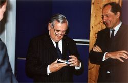 | Arrivée des invités à la mairie | Jacques BARROT, Vice Président de la Commission Européenne, Michel LEJEUNE, Député Maire de Forges les Eaux, Charles REVET, Sénateur de Seine Maritime | |